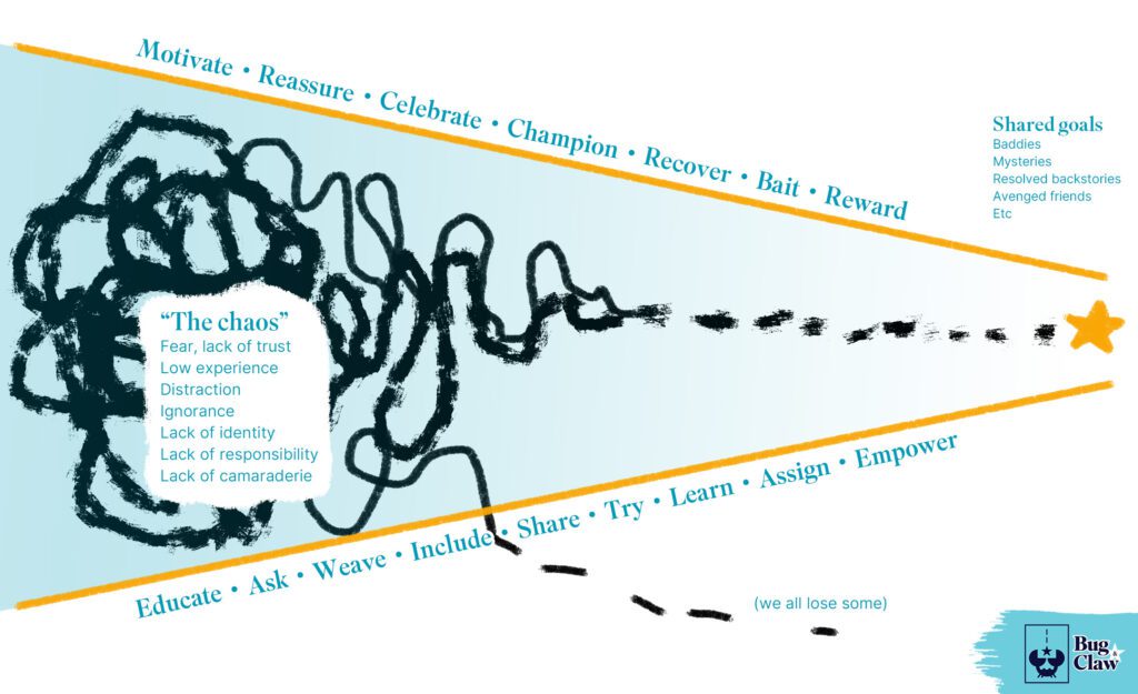 My last solution to helping the players overcome their fear & stigma, to help them commit, to mitigate when folks couldn't commit and needed to drop in and out, was to use skills from my day job.